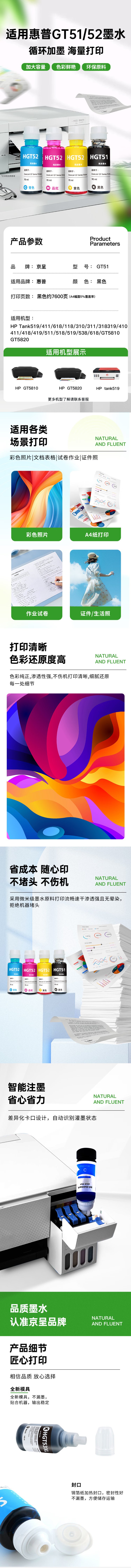 京呈 GT51 墨水 90ml 7600页 (单位:支) 适用惠普HP Tank518 519 678 510 538 418 516 511等 黑色