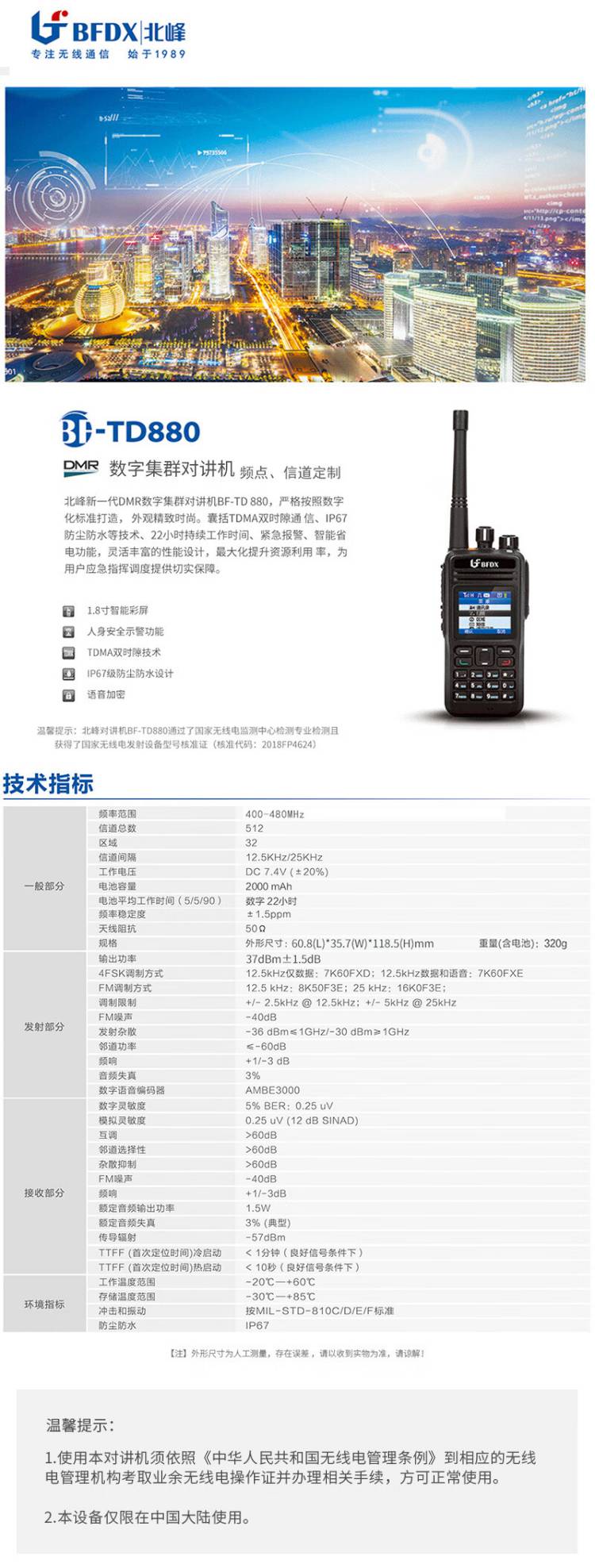 北峰(BFDX) BF-TD880 对讲机 (单位:部)