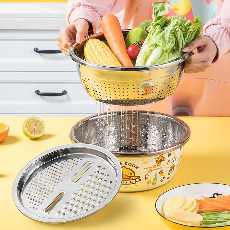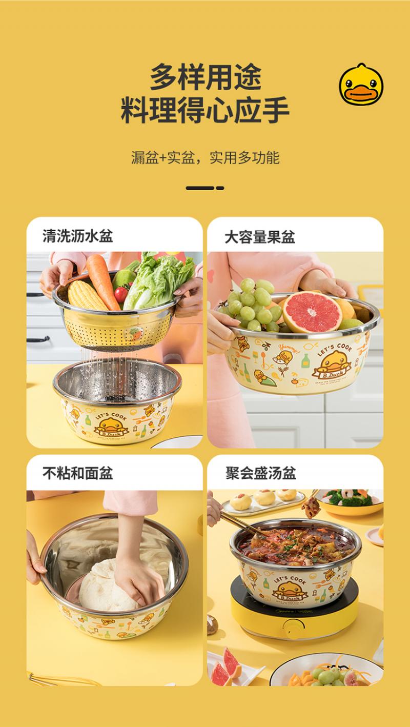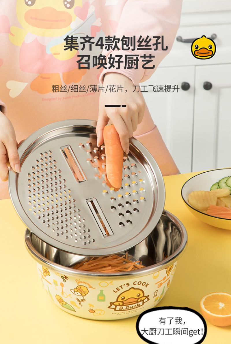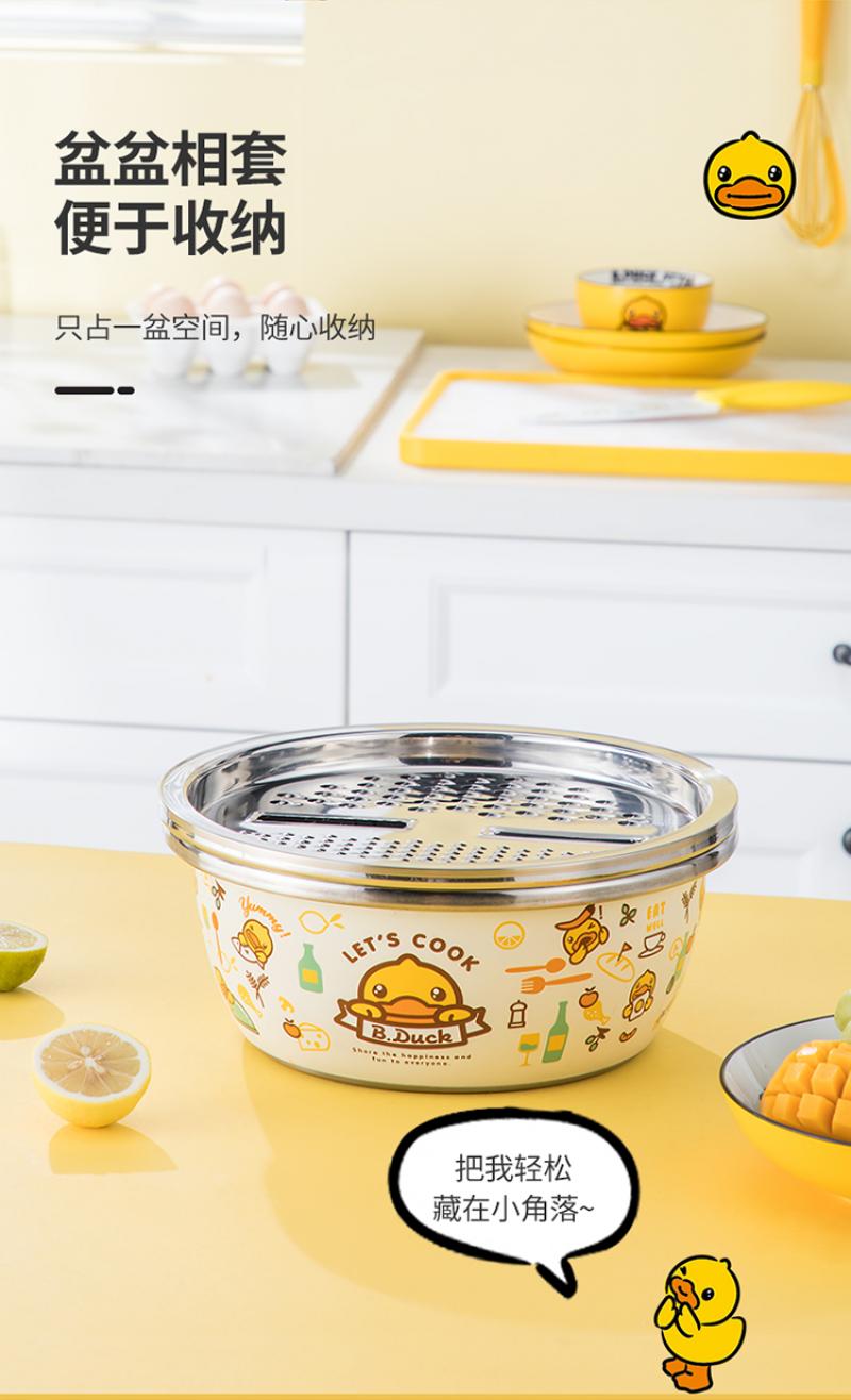 炊大皇B.Duck小黄鸭不锈钢盆筛刨三件套TP03XHY