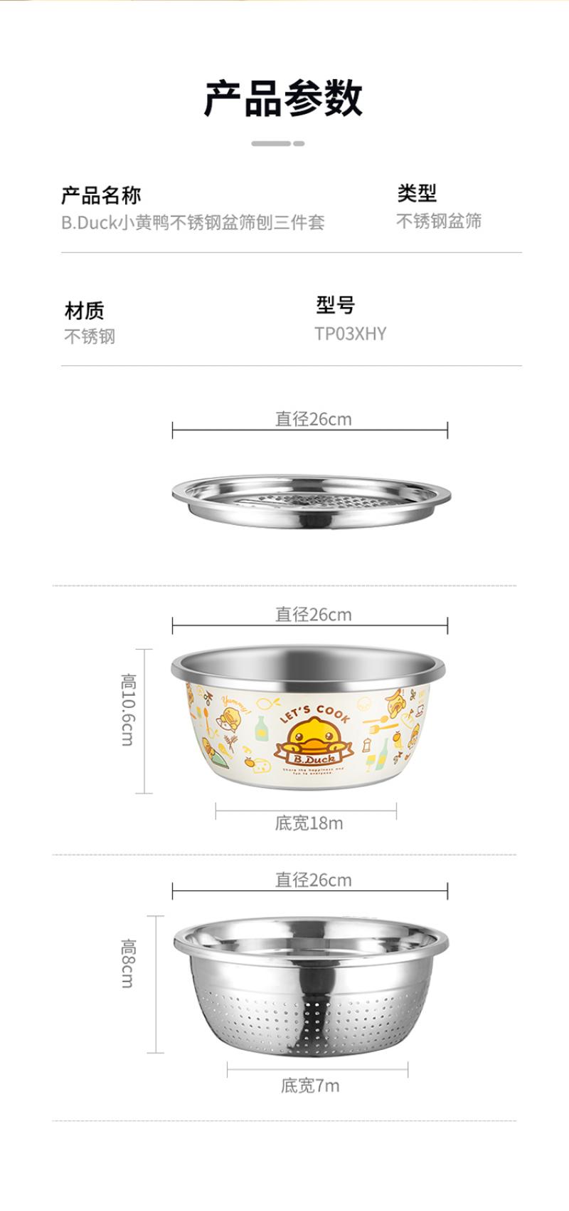 炊大皇 TP03XHY 炊大皇B.Duck小黄鸭不锈钢盆筛刨三件套TP03XHY (单位:只)