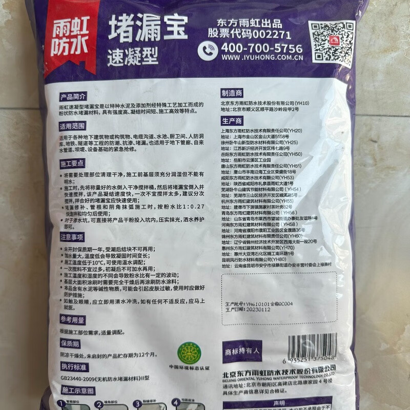 东方雨虹 速凝型 堵漏王 4公斤 (单位:袋)
