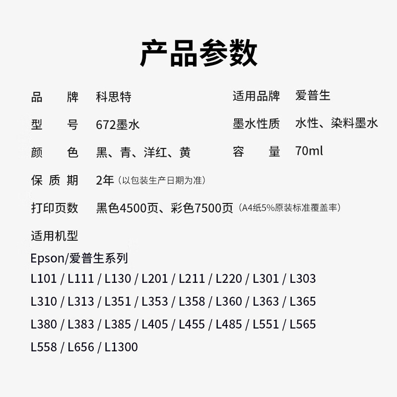 科思特(KST) 672M 墨水 7500页 (单位:支) 适用爱普生 L351 L358 L383 L455 L485 L1300 L310 T6721 红色