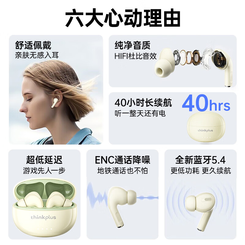 联想 LP5PRO 真无线蓝牙耳机 蓝牙5.4 (单位:副) 米色