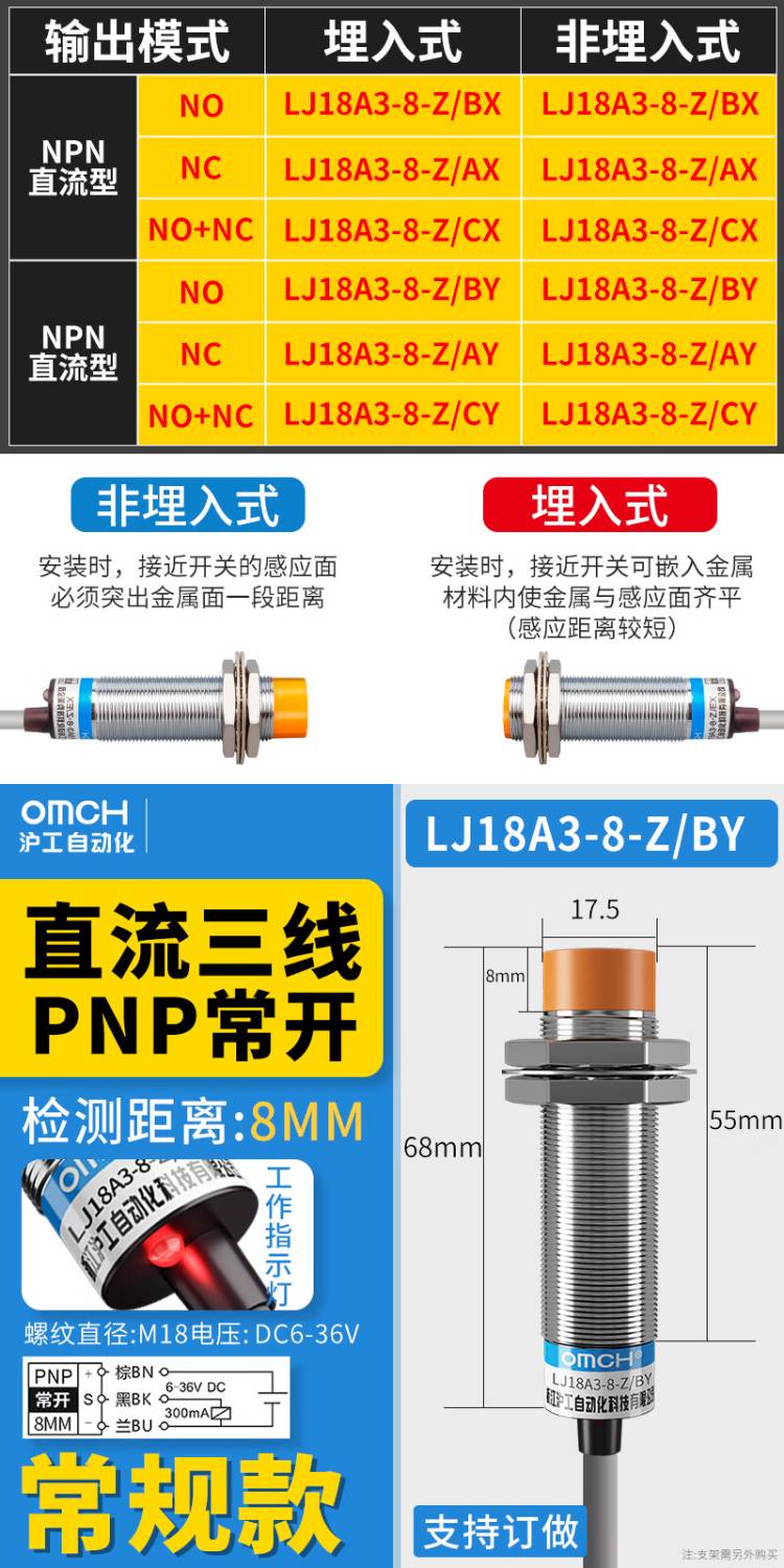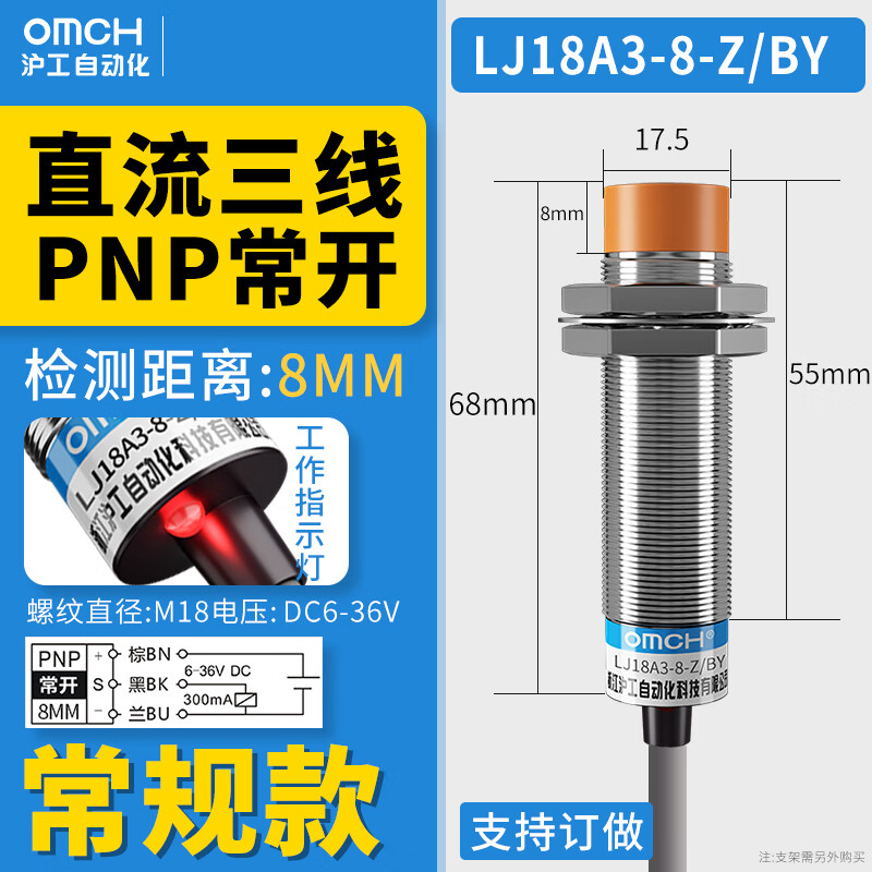 沪工 LJ18A3-8-Z/BY 接近开关 直流三线PNP常开 (单位:个)