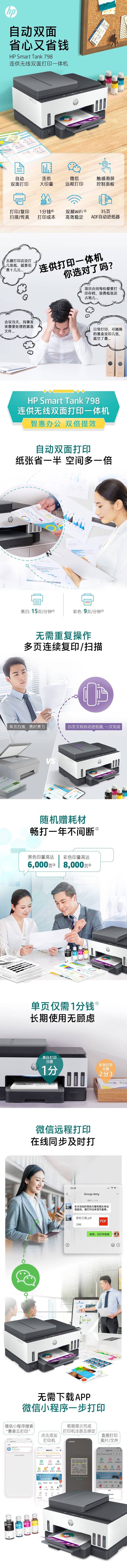 惠普(HP) Smart Tank 798 打印一体机 (单位:台) A4 复印/扫描/传真/打印