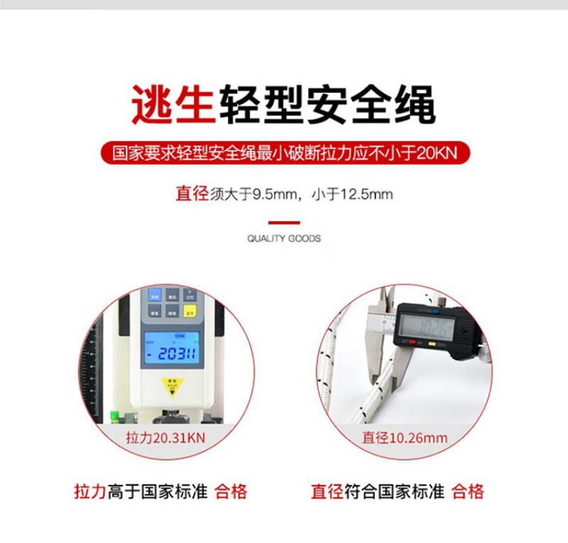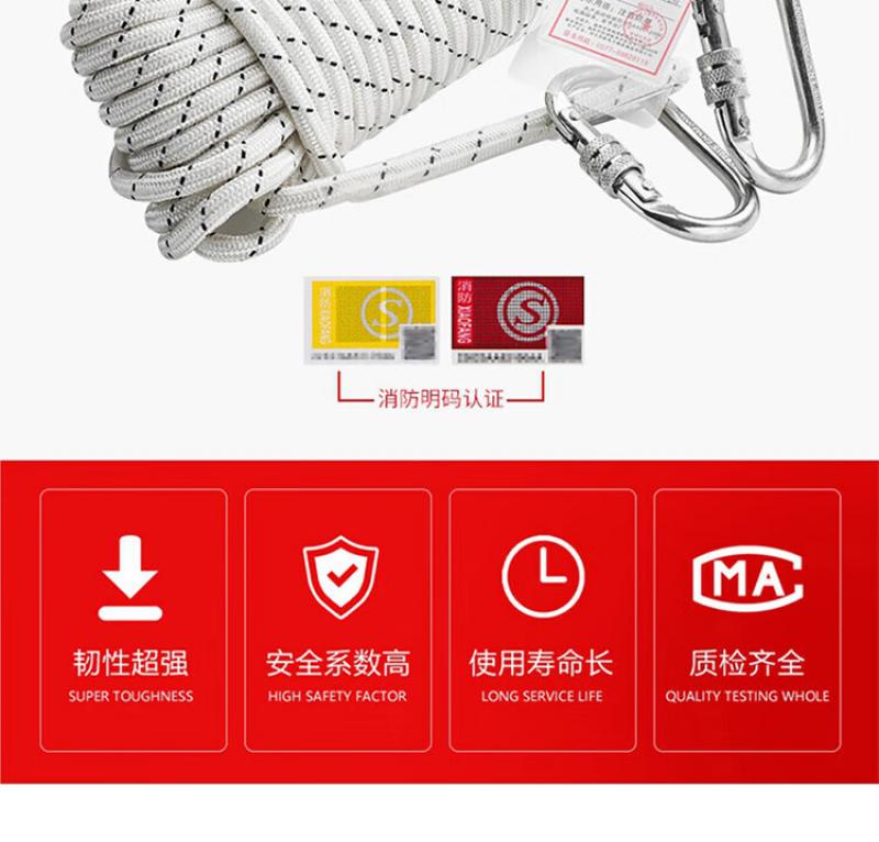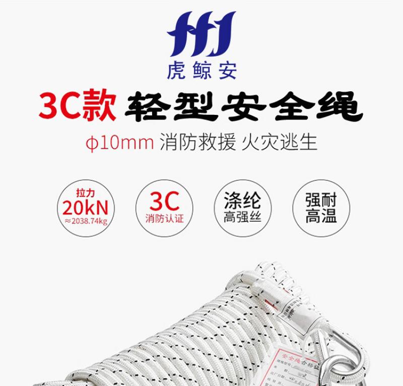 虎鲸安(HJ) FZL-S-Q10-20 虎鲸安 HJ 逃生安全绳轻型逃生绳防火灾高空作业 应急救援绳3C认证10mm线径 高楼逃生绳(20米) (单位:条)