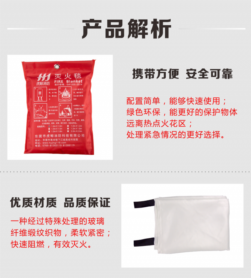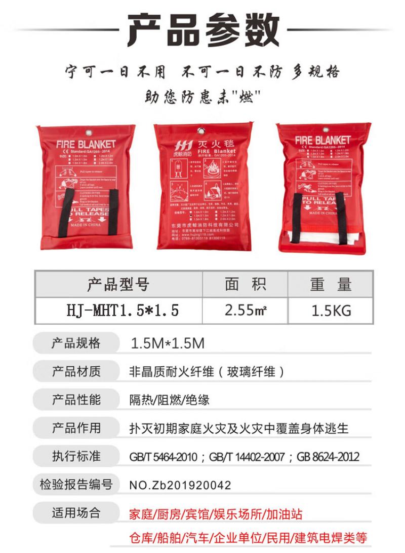 虎鲸安(HJ) HJ-MHT 1.5*1.5 虎鲸安(HJ) HJ-MHT 1.5*1.5 玻璃纤维430克 消防毯 (计价单位:张) (单位:张)