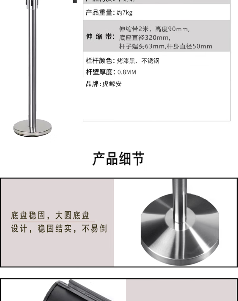 虎鲸安 HJ-SSGLD 伸缩隔离带 320*900MM(带长2米)单位:件