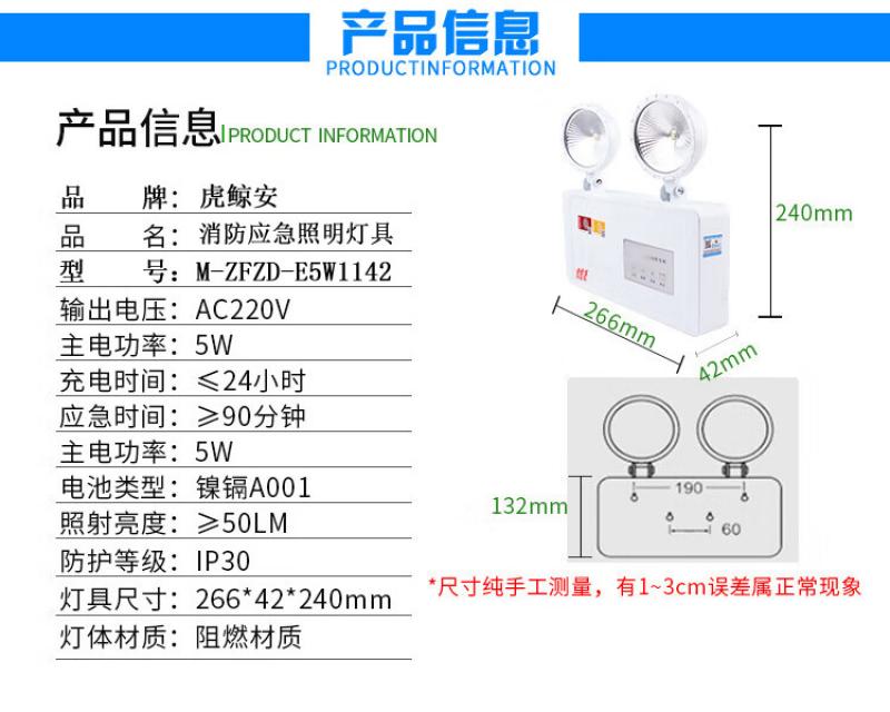 虎鲸安(HJ) M-ZFZD-E5W1142 虎鲸安 M-ZFZD-E5W1142 消防应急灯 90分钟应急 266*42*240mm 单位:件 (单位:个)