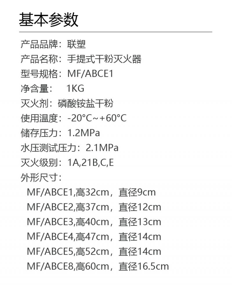 联塑(LESSO) MF/ABCE1 联塑(LESSO) 25年新国标 MF/ABCE1 手提式灭火器干粉 1公斤 1KG 单位:个 (单位:个)
