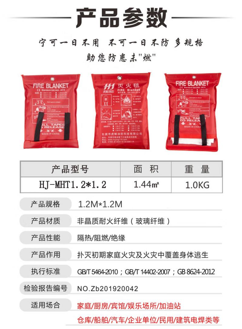 虎鲸安 HJ-MHT1.2*1.2 灭火毯 1.2Mx1.2M 单位:张