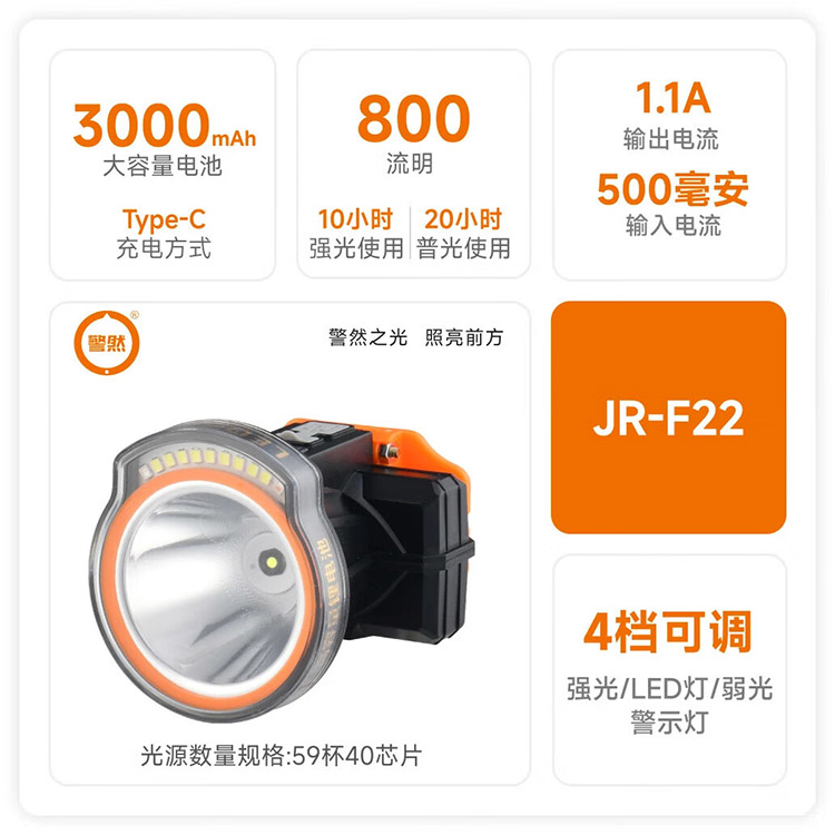 警然 JR-F22 头戴式户外灯 1400mAH (单位:个)