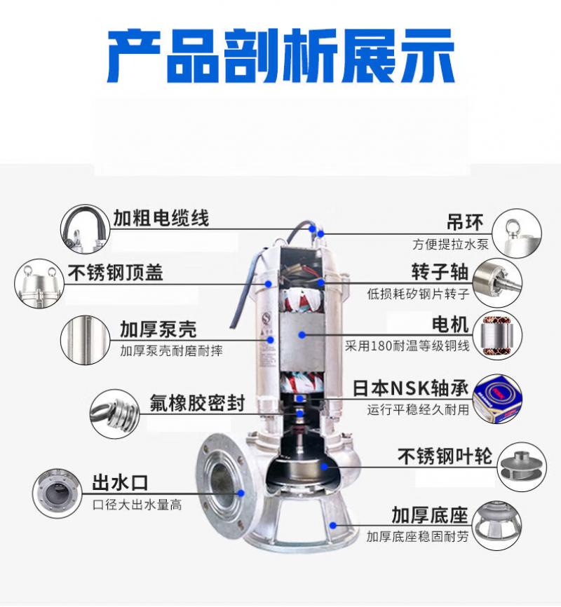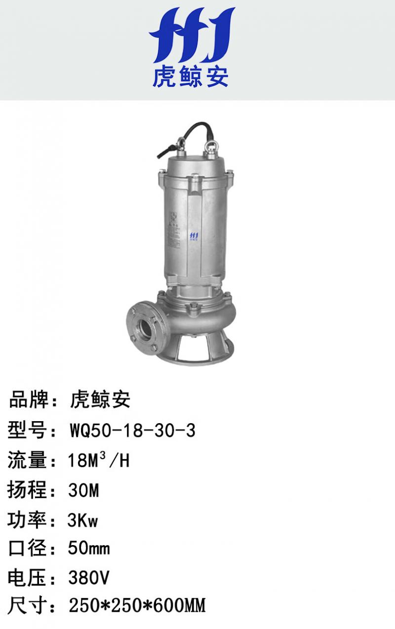虎鲸安 WQ50-18-30-3 不锈钢潜水排污泵 尺寸:250*250*600MM 单位:套