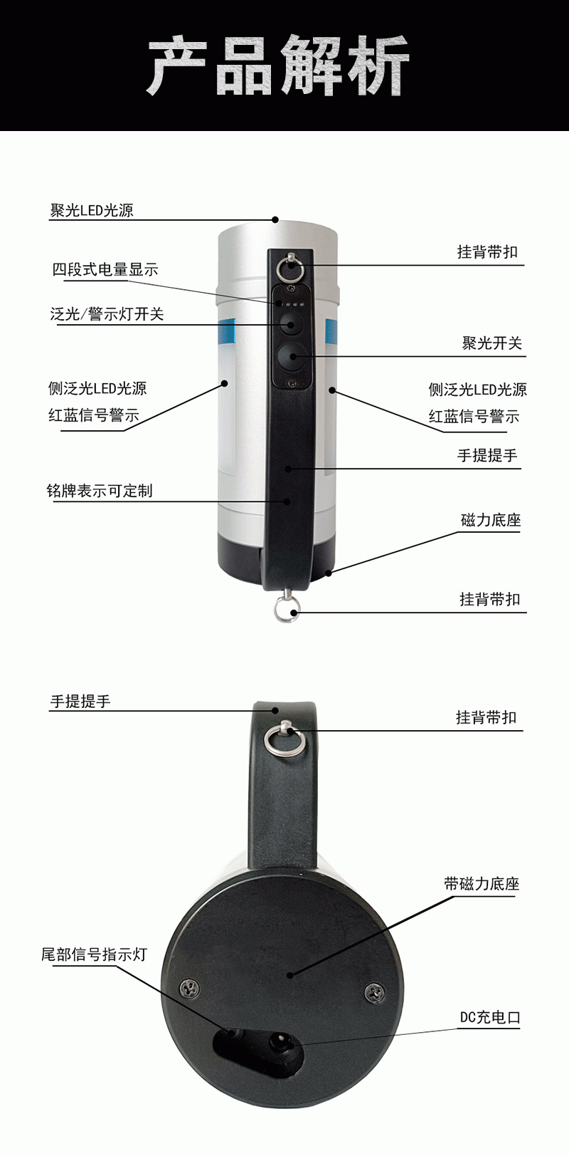 虎鲸安 HJ-RJW7106AB 多功能防爆应急手电 尺寸:190*70*130MM 单位:个