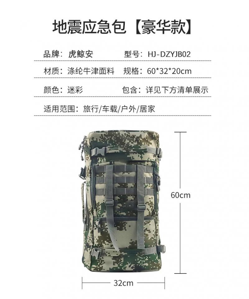 虎鲸安(HJ) HJ-DZYJB02 虎鲸安 HJ-DZYJB02 消防防灾包 地震救援包 地震应急包 豪华款 单位:套 (单位:套)