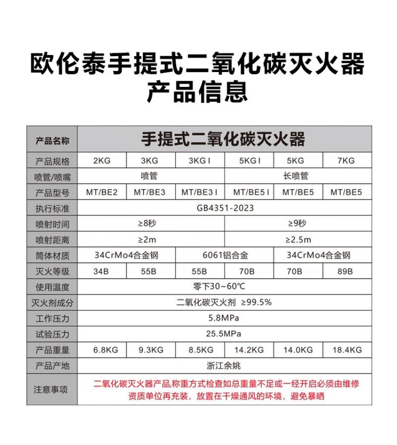 欧伦泰 MT/BE7 欧伦泰 25年新国标 MT/BE7 手提式灭火器二氧化碳 7公斤 7KG 单位:个 (单位:个)