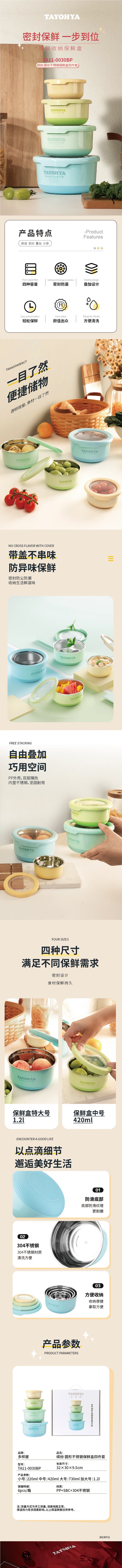 多样屋 TA11-0030BP 缤纷圆形不锈钢保鲜盒 四件套 (单位:套)