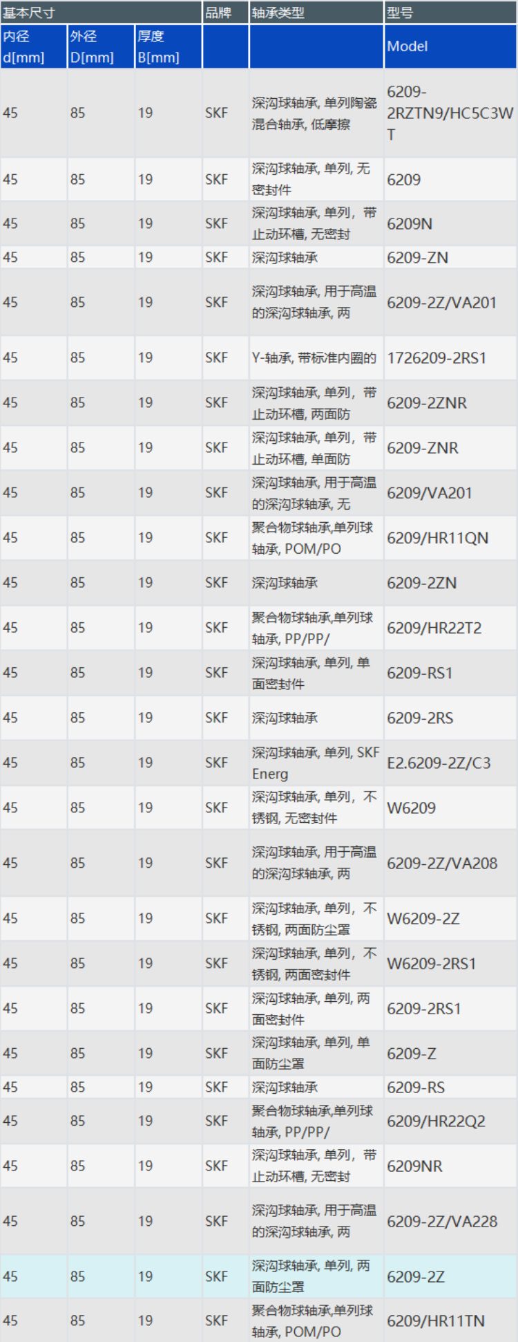 斯凯孚(SKF) 6209开式 轴承 (单位:个)