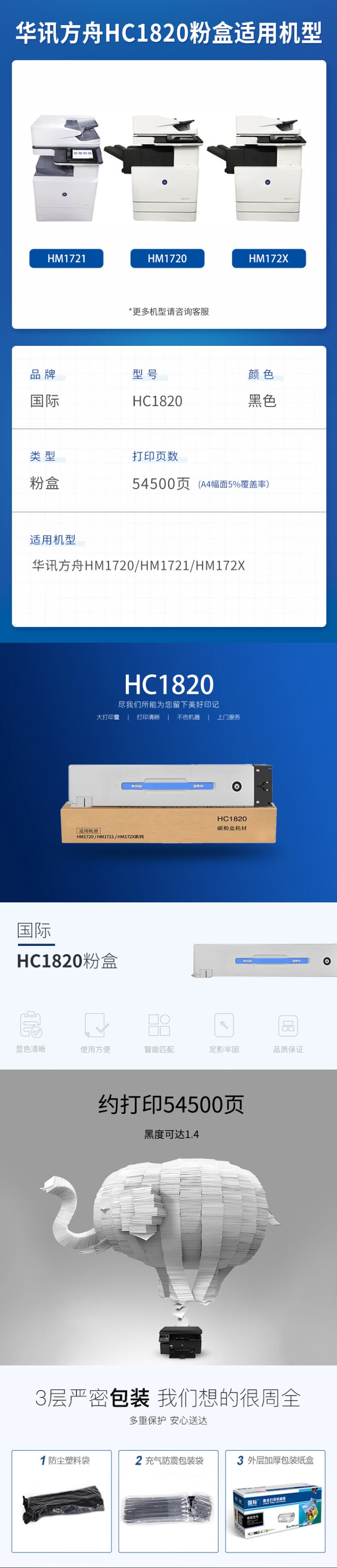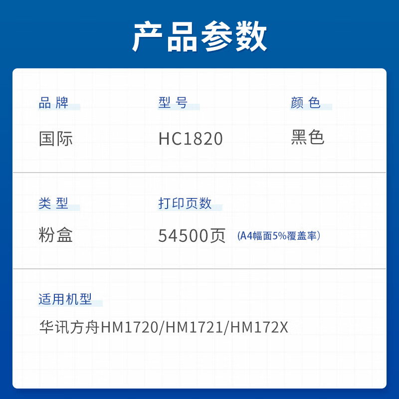 国际 HC1820 墨粉盒 54500页 (单位:支) 适用华讯方舟HM1720/HM1721/HM172X 黑色
