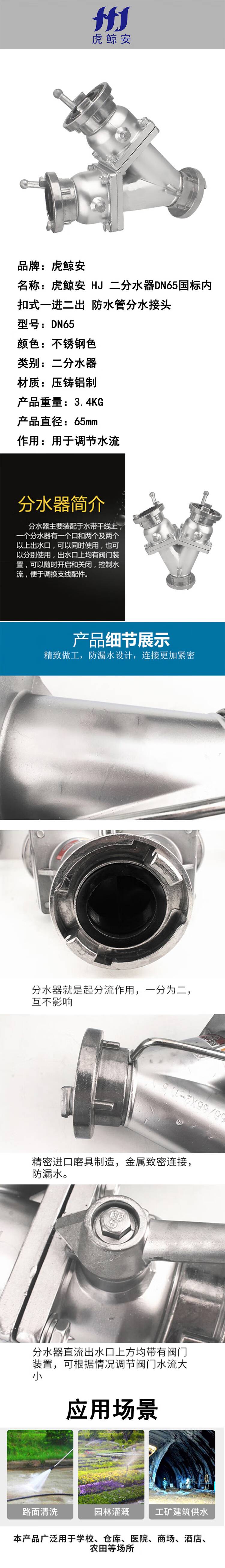 虎鲸安(HJ) DN65 二分水器 一进二出 (单位:个) 内扣式