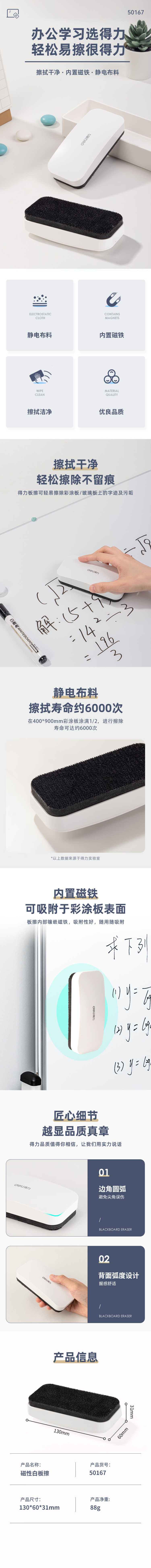 得力(deli) 50167 磁性白板擦 130*60*25mm (单位:个)