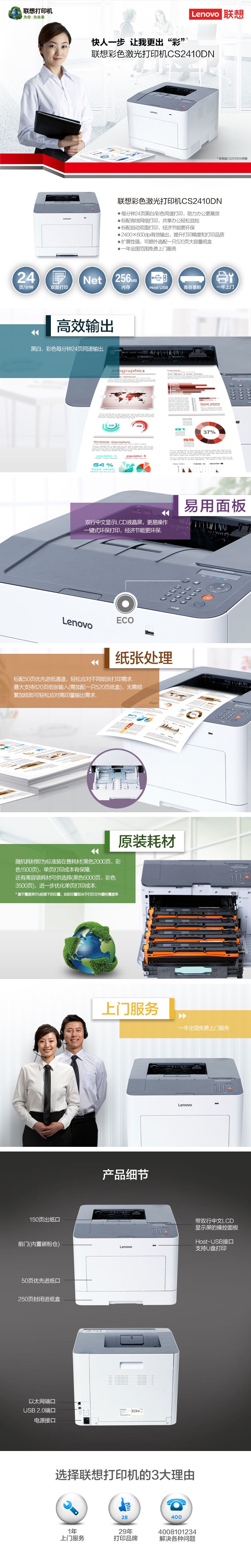 联想(Lenovo) CS2410DN plus A4彩色激光打印机 24页/分钟 (单位:台)