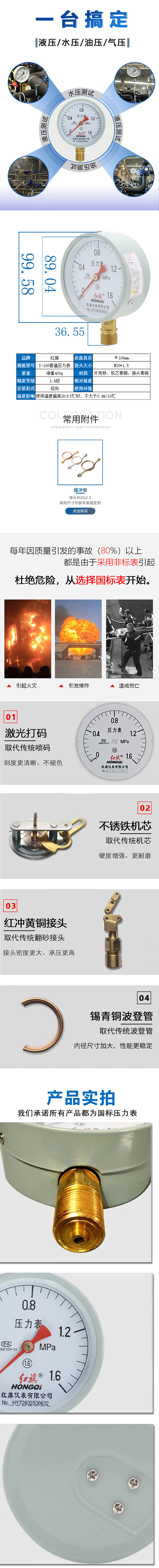 红旗 Y-100 压力表 0~0.1MPa (单位:个)