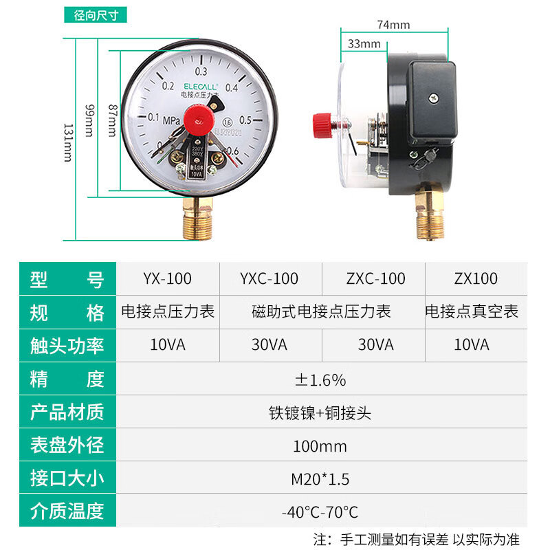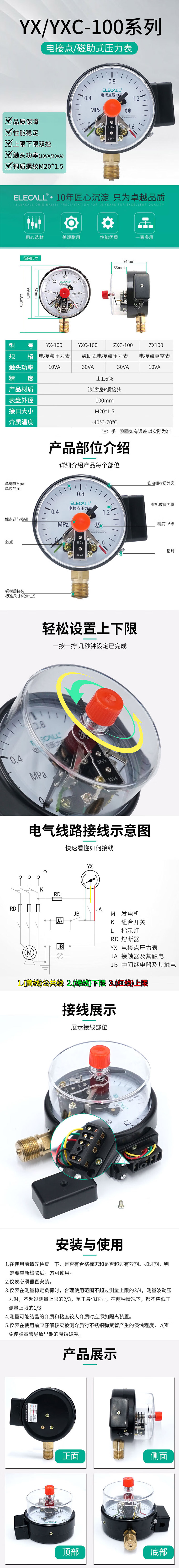 伊莱科(ELECALL) YX-100 电接点压力表 0-1.6MPA (单位:个)