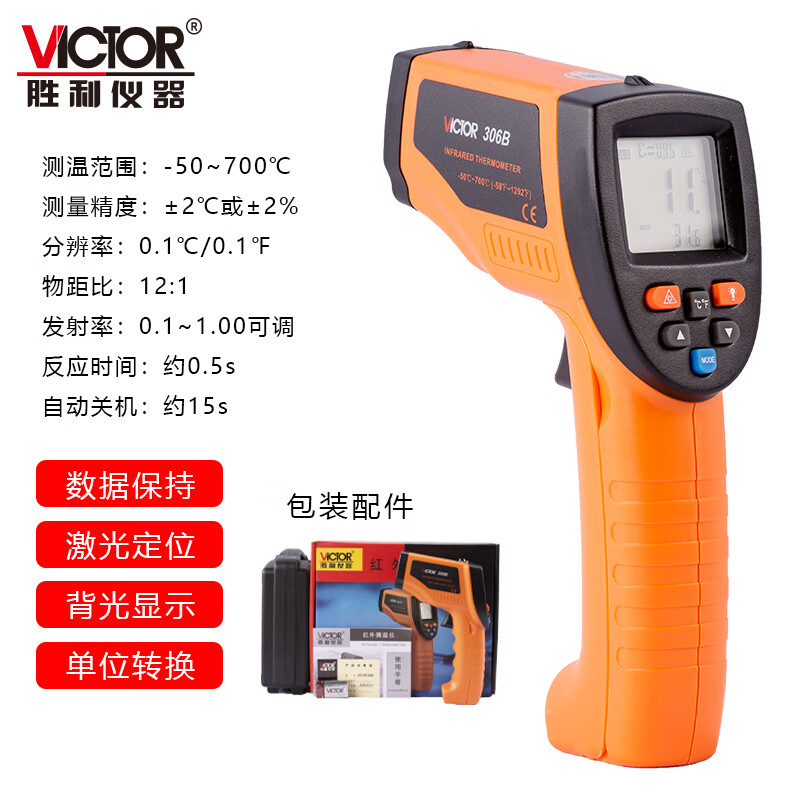 胜利仪器(VICTOR) VC306B 红外线测温仪 -50至700度 (单位:台)
