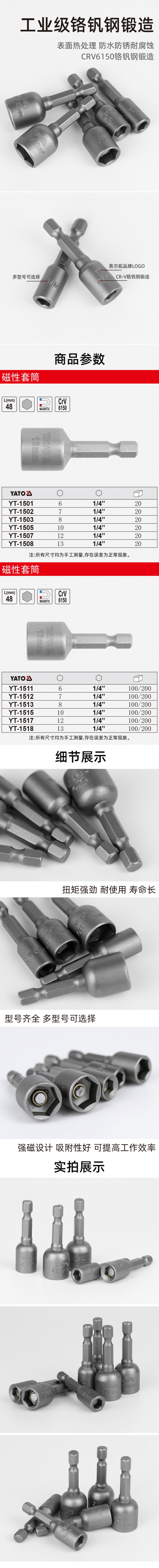 易尔拓(YATO) YT-1513 1/4英寸磁性套筒 8mm (单位:个)