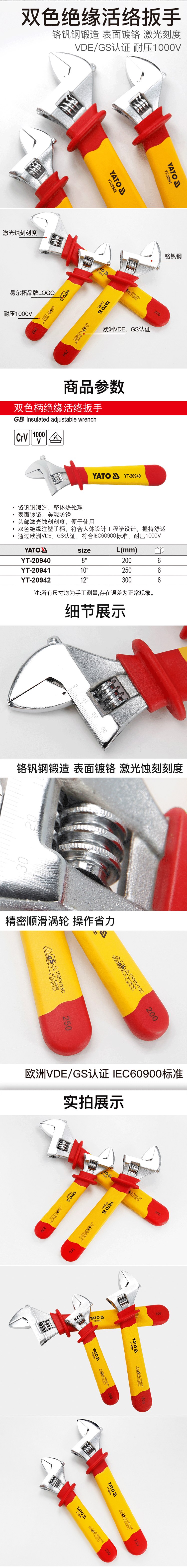 易尔拓(YATO) YT-20942 双色柄绝缘活络扳手 12英寸 (单位:个)
