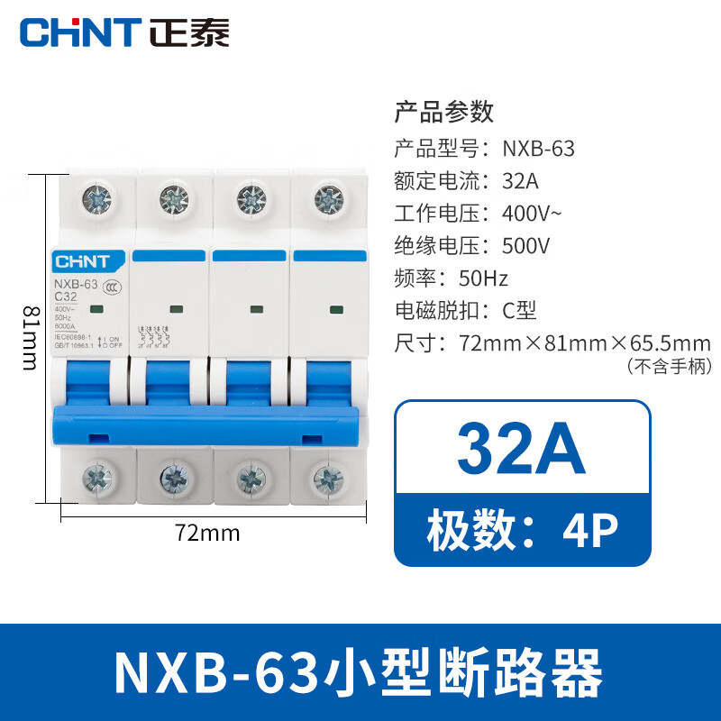 正泰(CHNT) NXB-63-4P-C32 小型断路器 4P 32A (单位:个)