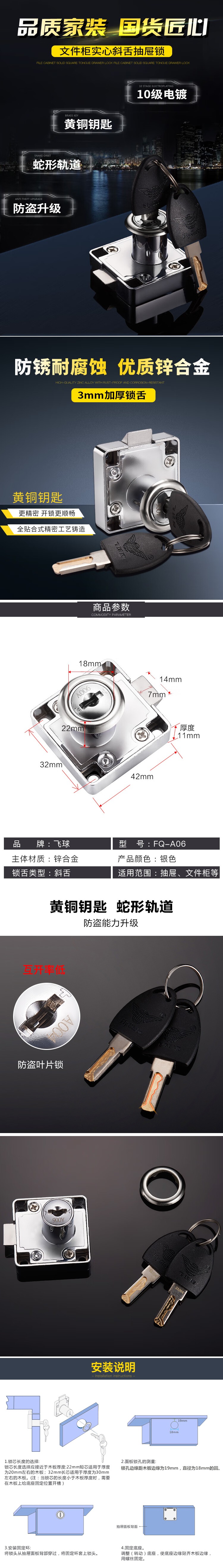 一帆 FQ-A06 斜舌锁 厚度22mm (单位:个)