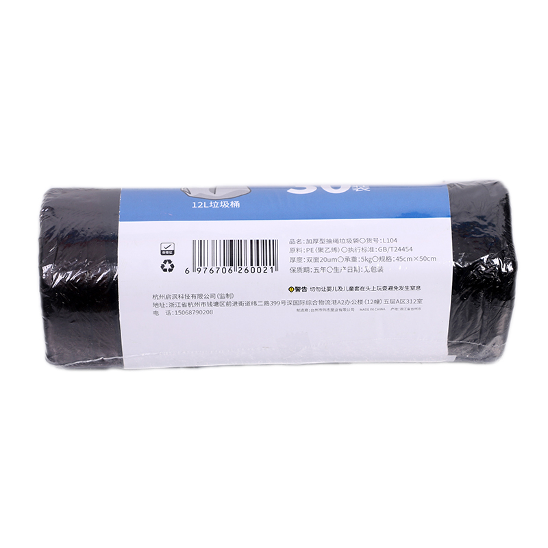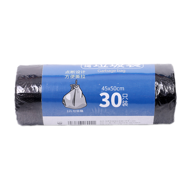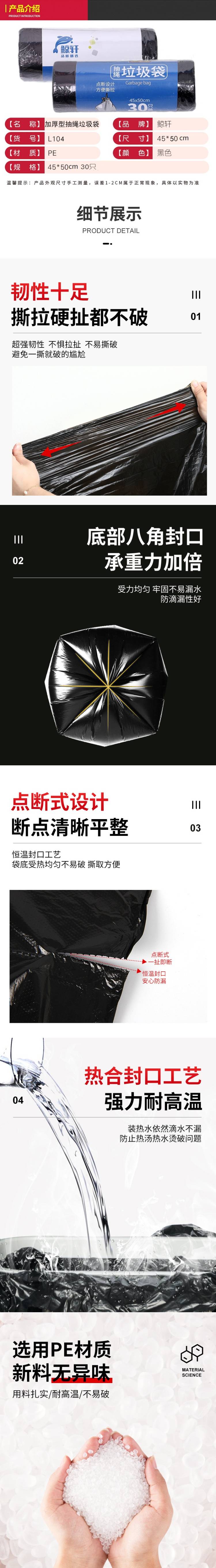 鲸轩 L104 加厚型抽绳垃圾袋 45*50cm 30只/卷 (单位:卷) 黑色