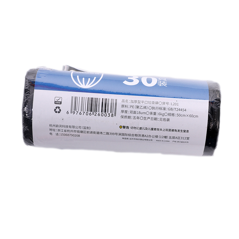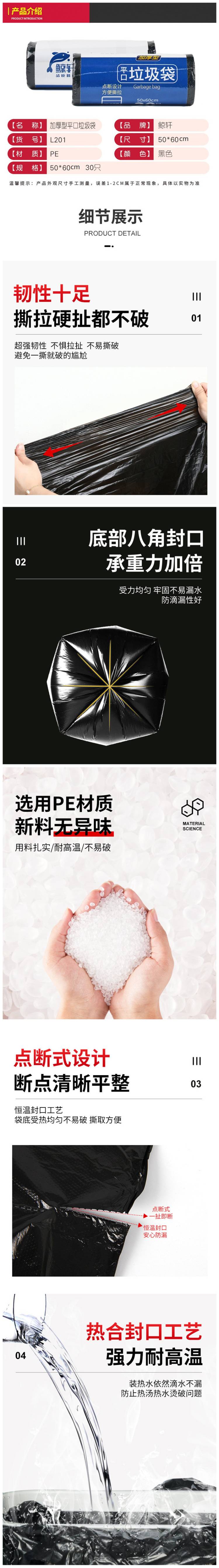 鲸轩 L201 加厚型平口垃圾袋 50*60cm 30只/卷 (单位:卷) 黑色