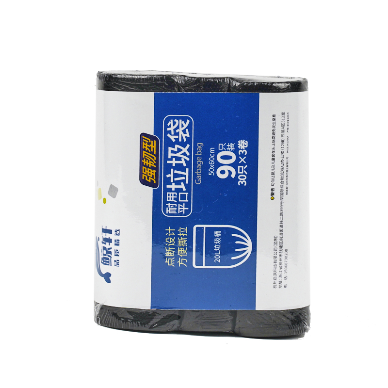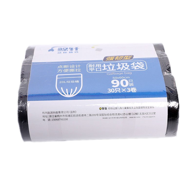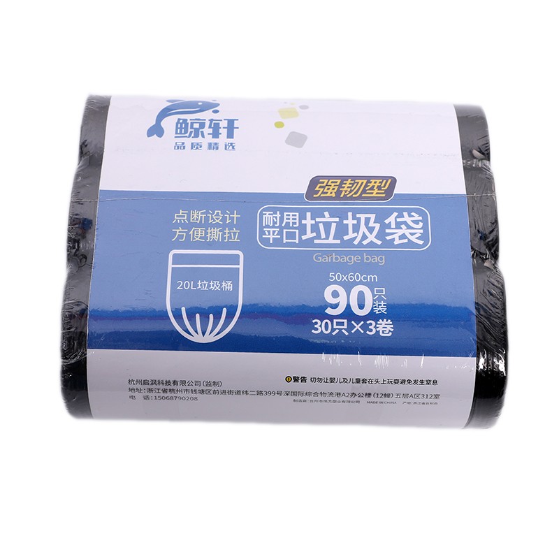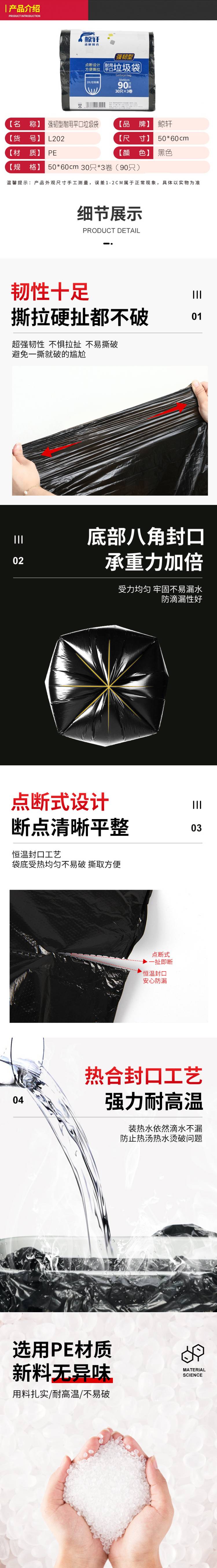 鲸轩 L202 强韧型耐用平口垃圾袋 50*60cm 30只/卷 3卷/包 (单位:包) 黑色