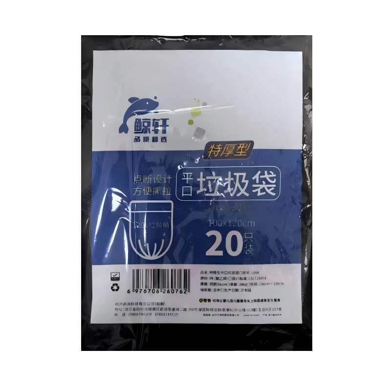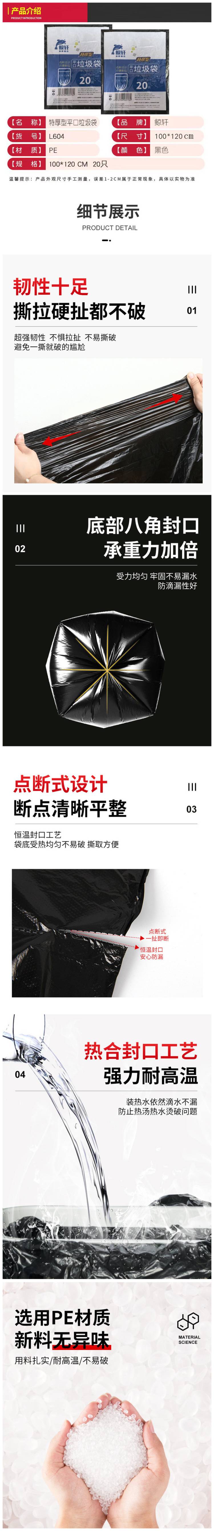鲸轩 L604 特厚型平口垃圾袋 100*120cm 20只/包 (单位:包) 黑色