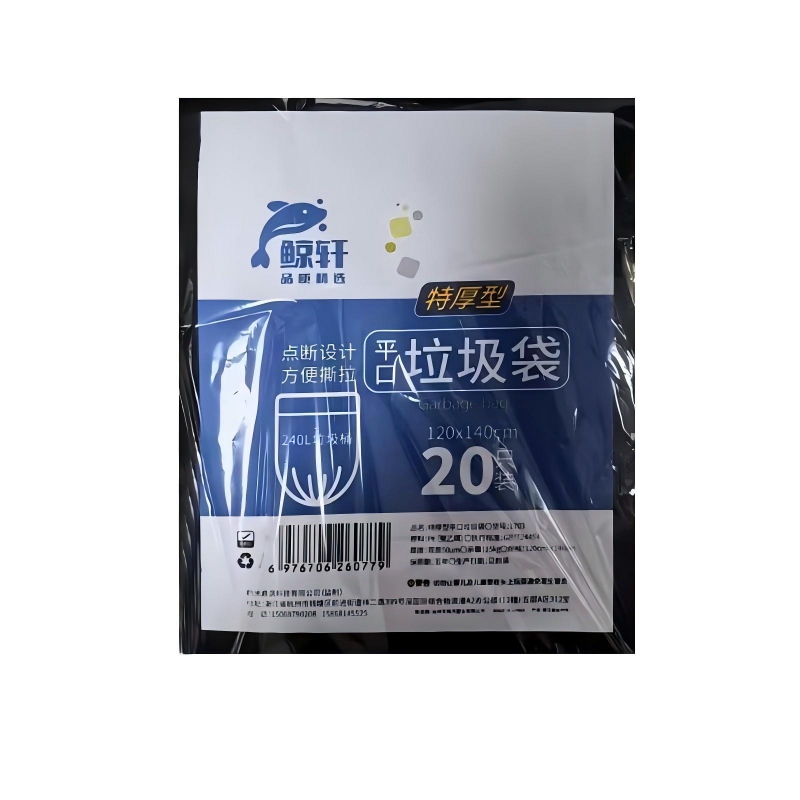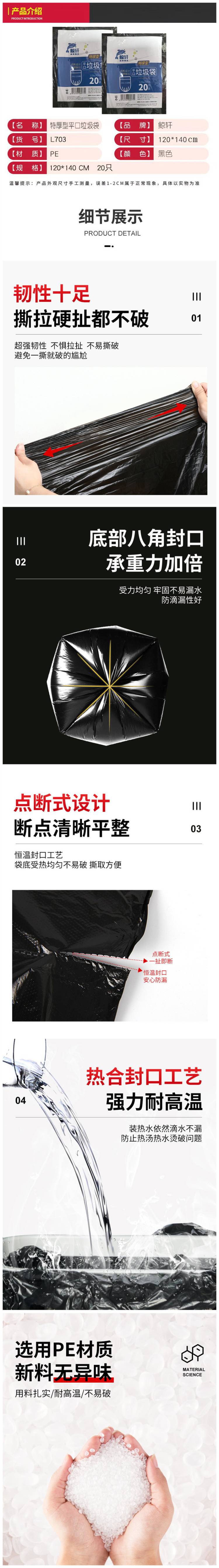 鲸轩 L703 特厚型平口垃圾袋 120*140cm 20只/包 (单位:包) 黑色