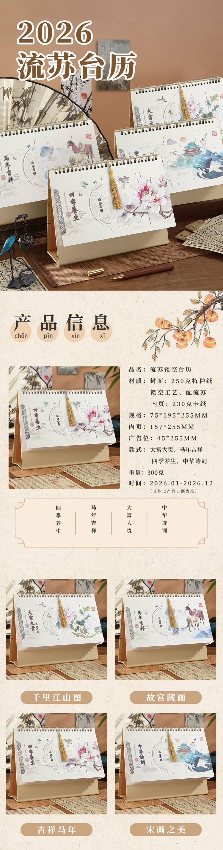 嘉然恒 2026马年 流苏镂空台历 中华诗词 (单位:个)