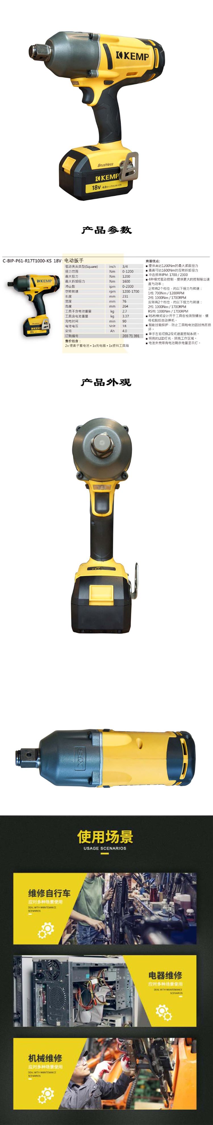 KEMP C-BIP-P61-R17T1000-KS 电动扳手 方头 1000Nm (单位:台)