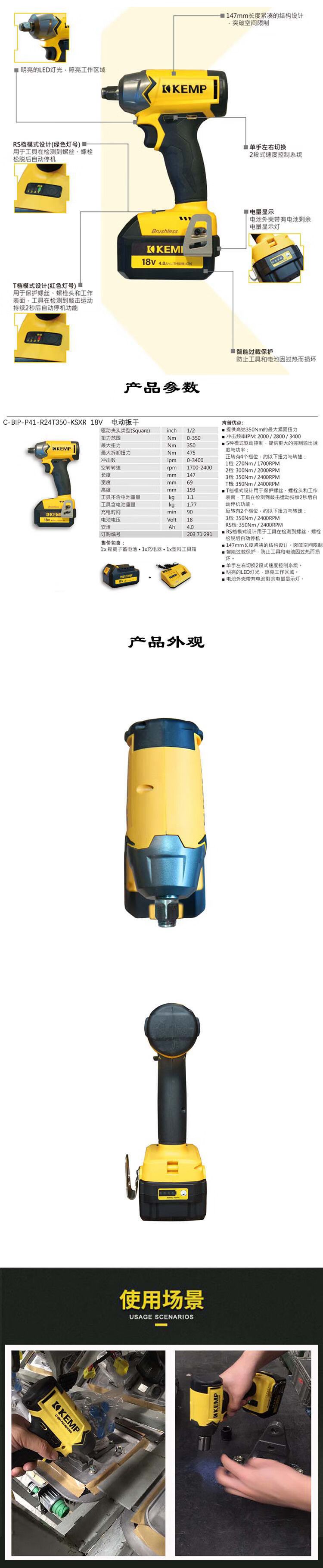 KEMP C-BIP-P41-R24T350-KSXR 电动扳手 方头 350Nm 一电一充 (单位:台)