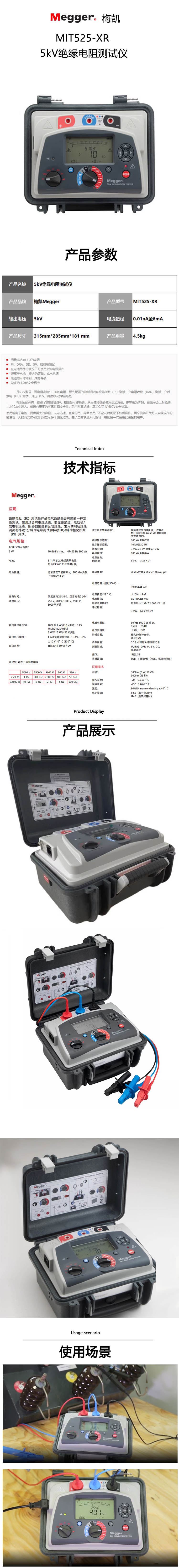 梅凯(Megger) MIT525-XR 5kV绝缘电阻测试仪 电流量程0.01nA~6mA (单位:台)