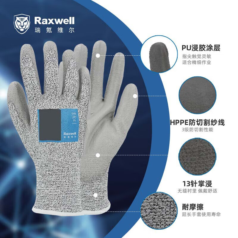 瑞氪维尔(Raxwell) XRRK-0332 3级防切割手套 9"/L (单位:副)
