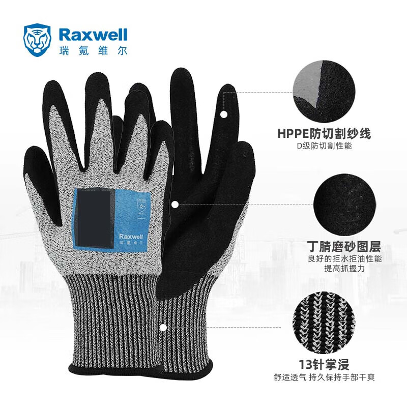 瑞氪维尔(Raxwell) XRRK-0313 5级防切割手套 9"/L (单位:副)
