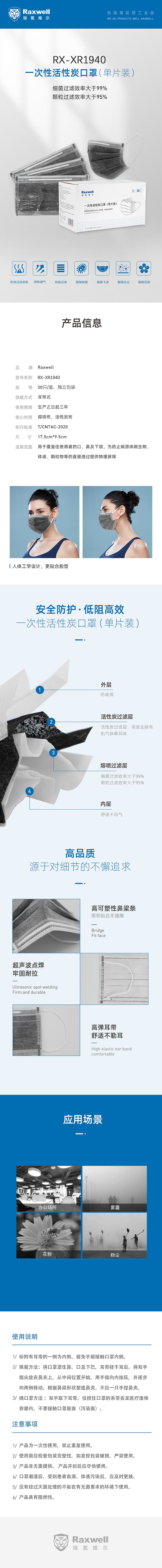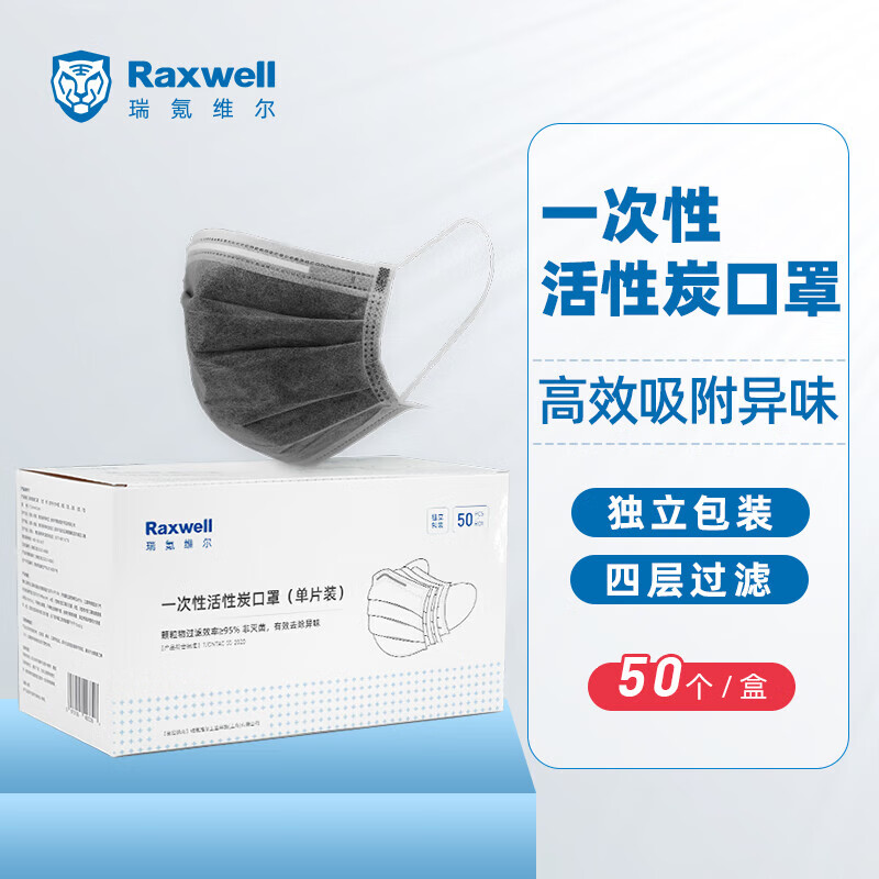 瑞氪维尔(Raxwell) RX-XR1940 一次性活性炭口罩 50片/盒 (单位:盒)