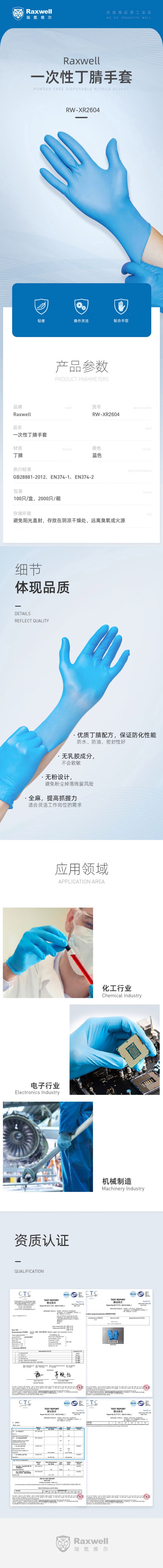 瑞氪维尔(Raxwell) RW-XR2604 一次性丁腈手套 XL码 100只/盒 (单位:盒) 蓝色