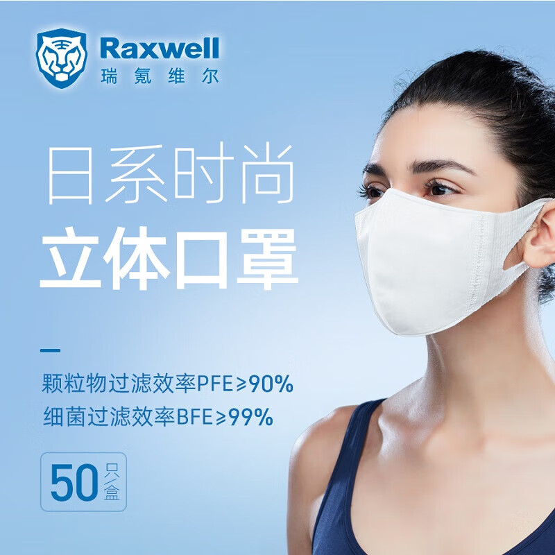 瑞氪维尔(Raxwell) RX-XR2010 日系时尚立体口罩 50枚/盒 (单位:盒)