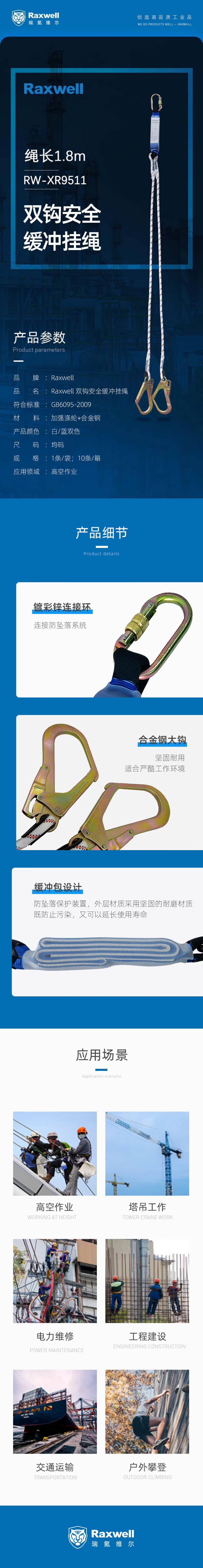 瑞氪维尔(Raxwell) RW-XR9511 双钩安全缓冲挂绳 1.8米 (单位:条)
