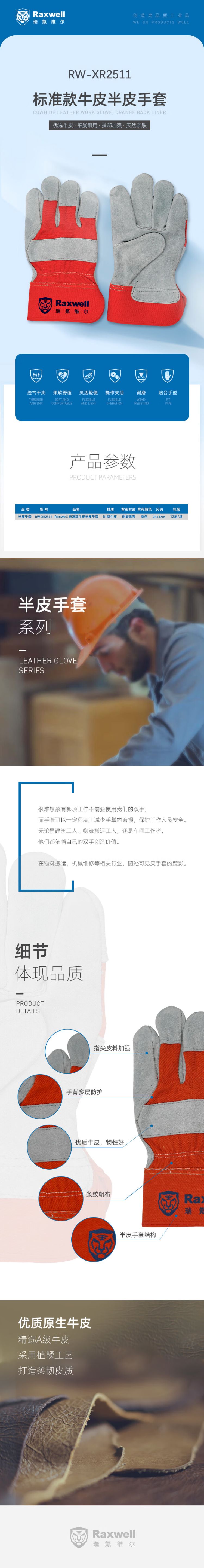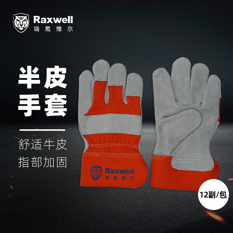 瑞氪维尔(Raxwell) RW-XR2511 标准款牛皮半皮手套 12副/袋 (单位:袋) 橙色背布