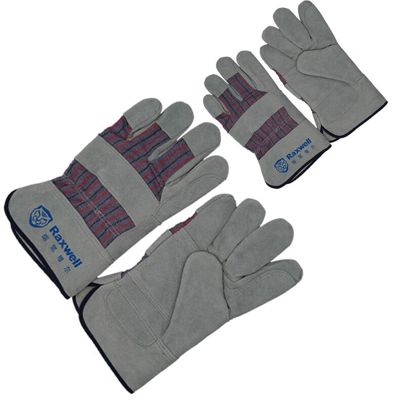 瑞氪维尔(Raxwell) RW-XR2513 加固款牛皮半皮手套 12副/袋 (单位:袋) 条纹背布